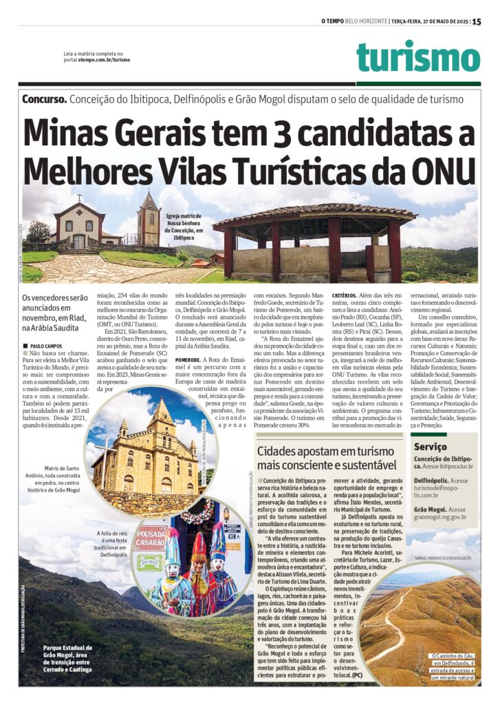 Os vencedores serão anunciados durante a Assembleia Geral da ONU Turismo, em novembro Por Paulo Campos Atualizado em 27 de maio de 2025 | 15:24 Escute o áudio da matéria Não basta ter charme. Para ser eleita a Melhor Vila Turística do Mundo, é preciso muito mais: ter compromisso com a sustentabilidade, com o meio ambiente, com a cultura e com a comunidade. Também só podem participar localidades de até 15 mil habitantes. Desde 2021, quando foi instituída a premiação, 254 vilas em todo mundo foram reconhecidas como as melhores no concurso da Organização Mundial do Turismo (OMT, ou ONU Turismo). 📲 Acesse o canal de O TEMPO no WhatsApp No primeiro ano do concurso, São Bartolomeu, distrito de Ouro Preto, concorreu ao prêmio, mas a Rota do Enxaimel de Pomerode, em Santa Catarina, acabou ganhando o selo que atesta a qualidade de seu turismo. Em 2025, Minas Gerais será representada por três vilas turísticas na premiação mundial: Conceição do Ibitipoca, Delfinópolis e Grão Mogol. O resultado será anunciado durante a reunião da Assembleia Geral da entidade, que ocorrerá de 7 a 11 de novembro, em Riad, capital da Arábia Saudita, onde a ONU Turismo instalou um escritório regional. Pomerode A Rota do Enxaimel, em Pomerode, pode ser explorada em um passeio de bike – Foto: Leo Laps / Divulgação A Rota do Enxaimel é um roteiro de visitação com a maior concentração fora da Europa de casas de madeira construídas em enxaimel, técnica que, trazida pelos imigrantes alemães, dispensa prego ou parafuso, funcionando apenas com encaixes. Ao todo, são 50 casas ao longo de 16 km, em um percurso tombado pelo Instituto do Patrimônio Histórico e Artístico Nacional (Iphan). Segundo Manfredo Zmazek Goede, secretário de Turismo de Pomerode, um bairro da cidade que era inexplorado pelos turistas é hoje o ponto turístico mais visitado. O prêmio não só deu visibilidade internacional ao destino catarinense, como também incentivou a organização da comunidade. “A Rota do Enxaimel ajudou na promoção da cidade como um todo. Mas a diferença efetiva provocada no setor turístico foi a união e capacitação dos empresários para tornar Pomerode um destino mais sustentável, gerando empregos e renda para a comunidade”, salienta Goede, que na época da premiação era presidente da associação Visite Pomerode. O turismo em Pomerode cresceu cerca de 30%. Além das três mineiras, outras cinco completam a lista a candidatas: Antônio Prado (RS) Cocanha (SP) Leoberto Leal (SC)] Linha Bonita (RS) Piraí (SC). Desses, dois destinos seguirão para a etapa final e, caso um dos representantes brasileiros vença, integrará a rede de melhores vilas turísticas eleitas pela ONU Turismo. As vilas reconhecidas recebem um selo que atesta a qualidade do seu turismo, incentivando a preservação de valores culturais e ambientais. O programa contribui para a promoção das vilas vencedoras no mercado internacional, atraindo turistas e fomentando o desenvolvimento regional. Um conselho consultivo externo, formado por especialistas globais, avaliará as inscrições com base em nove áreas: Recursos Culturais e Naturais; Promoção e Conservação de Recursos Culturais; Sustentabilidade Econômica; Sustentabilidade Social; Sustentabilidade Ambiental; Desenvolvimento do Turismo e Integração da Cadeia de Valor; Governança e Priorização do Turismo; Infraestrutura e Conectividade; Saúde, Segurança e Proteção Conceição do Ibitipoca A igreja Matriz de Nossa Senhora da Conceição – Foto: Nara de Almeida Costa / Divulgação Conceição do Ibitipoca (ou Ibitipoca), siituada no município de Lima Duarte, é um dos vilarejos mais antigos do Estado, com ruas de pedrinhas, paisagens deslumbrantes e casas coloridas. A vila carrega marcas das riquezas conquistadas durante o Ciclo do Ouro. Seu nome, originário do tupi-guarani, significa algo como “serra que explode”. Antigo caminho dos bandeirantes na época do ouro, a região ostenta um tesouro religioso: a igreja matriz da Imaculada Conceição, erguida no século XVIII. A acolhida calorosa, a preservação das tradições e o esforço da comunidade em prol do turismo sustentável consolidam a vila como um modelo de destino consciente. “A vila de Ibitipoca teve seu início com a construção da igreja matriz, em 1768. O charme desse lugar reside em um conjunto singular de características que, mesmo com a modernidade, preservam os traços de sua fundação. A vila oferece um contraste fascinante entre a história, a rusticidade mineira e elementos contemporâneos, criando uma atmosfera única e encantadora”, destaca Alisson Vilela, secretário de Turismo de Lima Duarte. Grão Mogol A igreja Matriz de Santo Antônio, toda construída em pedra, em Grão Mogol – Foto: Prefeitura de Grão Mogol / Divulgação A cordilheira do Espinhaço é aquilo que define bem Minas Gerais: um mar de montanhas. Esse conjunto de montanhas forma uma cordilheira que atravessa três biomas: Mata Atlântica, Cerrado e Caatinga, o que garantiu ao Espinhaço o título de Reserva Mundial da Biosfera pela Unesco, colocando seu ecossistema no mesmo status da Amazônia e do Pantanal. Essa região única é perfeita para ecoturismo e turismo de aventura por reunir cânions, lagos, rios, cachoeiras e paisagens únicas. Uma das cidades-polo é Grão Mogol. Silenciosamente, a transformação de Grão Mogol começou há três anos, com a implantação de um plano de desenvolvimento e valorização do turismo na cidade. “Entre os finalistas indicados ao prêmio, reconheço o potencial de Grão Mogol e todo o esforço que tem sido feito para implementar políticas públicas eficientes para estruturar e promover a atividade, gerando oportunidade de emprego e renda para a população local e fomentando a conservação do patrimônio histórico e a preservação do meio ambiente”, afirma Ítalo Mendes. Delfinópolis A tradição da Folia de Reis, em Delfinóp